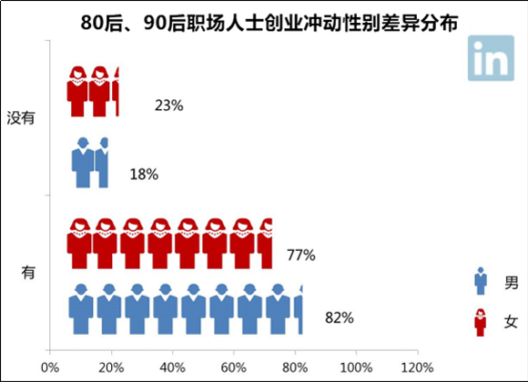 互联网经济的特性正在释放女性优势,领英中国与数字100市场研究公司联合发布的《80、90后职场人群现状调查》报告显示,近八成80、90后职场女性拥有创业梦想。