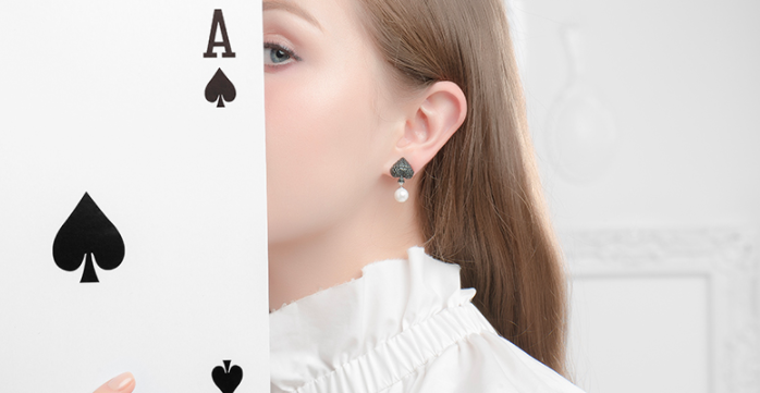 这个系列以红桃皇后手下的纸牌兵为灵感,打造出来小巧百搭的纸牌骑士耳钉。这套耳钉有四只,可以自由搭配组合,满足个性需求,搞怪而又细节精致,风靡IT girl界也就不奇怪了。