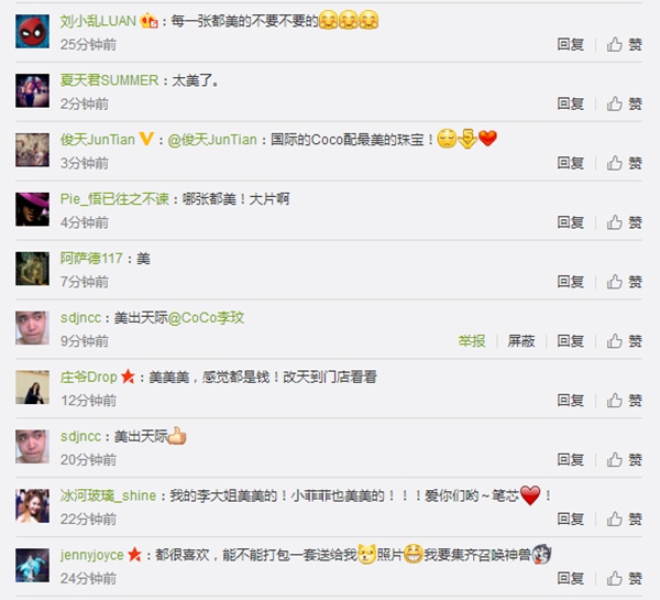 ▲CoCo李玟粉丝在赛菲尔官方微博火热互动