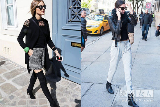 名媛Olivia Palermo每次现身,都会被夸一番。走在秋日街头的她,镂空设计的独特上衣配上质感十足的毛呢短裤,再登上一双超长的膝上靴,想穿短裤又怕冷的女生不妨试试看这种穿搭。