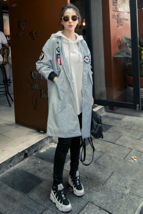 时尚好看的长款牛仔风衣,街头范儿十足,搭配个性连帽卫衣和黑色铅笔裤,配上厚底休闲鞋,很惹眼吸睛的搭配,非常有范!