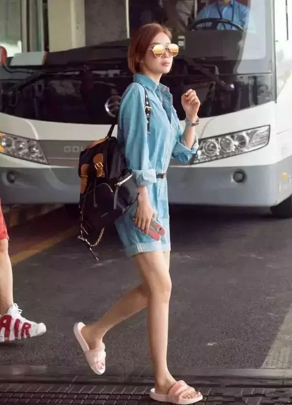 演员张俪脚蹬Chloe kerenn平底拖鞋出现在机场,这鞋也不便宜呀,软妹币也要5280元呢。