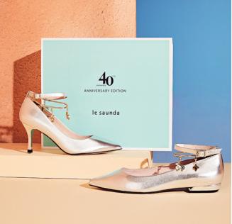 le saunda 40周年特别版「CHARM Collection」在经典款式「Pretty Pumps」基础上进行创意设计。「CHARM」寓意着迷人、魅力、聪明,如同le saunda时尚女性在职场中依然发挥自如,充满着智慧、从容和干练的气质。本系列延续一鞋多穿的概念,设计师巧妙将金属链饰增加在鞋履设计上,再搭配可以随意替换的小饰扣,让一款鞋履可以变化出超过5种以上的混搭方法,满足不同的搭配需要。重要一提的是,小饰扣上的装饰是甄选施华洛世奇( Swarovski )精雕细琢打造的水晶,让足下熠熠闪烁。