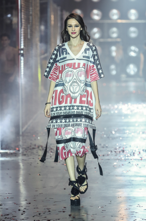 本次发布会2016春夏系列,在保持原有的Chi Zhang品牌华丽酷炫的街头风格之下,将品牌logo“防毒面具”进行了更多形式的变革,与往年硬朗的风格不一样的是,今年春夏的很多Look更多了些性感的元素。整个系列运用的颜色也更加地丰富,面料的运用更是达到40多种,在此基础上,本季的廓形和细节都比往年要丰富了好几个度。