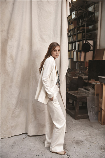 这一系列采用休闲宽松的海洋风突显40年代的服饰风格,由棉麻混纺面料打造的轻快休闲的廓形,同时不失女性线条的裁剪。 经典条纹、格子与泡泡纱面料在雕塑美学的精妙轮廓中得到重新演绎,散发着轻松惬意的气息。 男装系列采用质感条纹面料,融汇海洋风流行元素,休闲而不失精致的都会男士风跃然衣间。 各种易于配衬的沙褐色和海绿色单品,勾勒出海洋与沙滩夏日度假的情调。