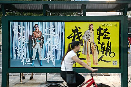 果然,在国庆假期之后,深圳的人潮回归,同时深南大道两侧,再次出现了抢眼的画面,看来是WESTLINK西遇通过日常服装的穿搭来诠释对轻潮?问号的解答。这一波的公交站点广告画面更加色彩鲜明吸引眼球。