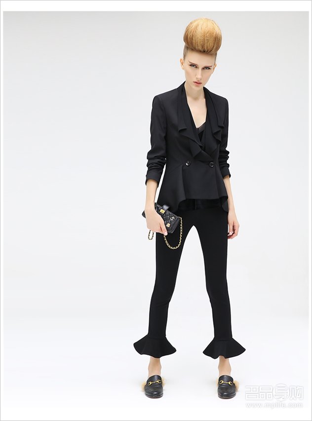 更有收腰荷叶边西服短外套女休闲小西装CT392,简约的西装廓形,精湛立体裁剪工艺,更加贴合女性身材曲线,灵动飘逸的荷叶边领,独特的领型设计,前身荷叶下摆设计,自然垂落的美妙弧度,立体有型,丰富衣身层次感。