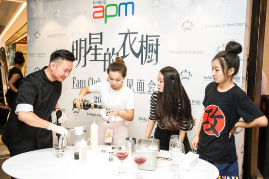 9月9日晚,众多时尚达人齐聚北京apm购物中心,在B1层Ms Suger餐厅畅聊时尚与美食的故事。在高雅精致的氛围中,时令新鲜食材与美食家之间的健康美味关系得以多角度呈现,时尚美妆在搭配师精心诠释下将秋冬季潮流趋势完美传达。北京apm与粉丝间的亲密互动拉近了彼此的距离,这场意为“明星的衣橱”粉丝主题见面会以其创新、独特的跨界表现形式惊艳全场,时尚前沿的三家重量级品牌,全球顶尖的化妆品品牌MAKE UP FOR EVER,诞生于法国巴黎的时尚女装品牌bread n butter,以及闺蜜主题餐厅MS Sugar全力合作,一起带给消费者一场精致、高品质的感官体验。