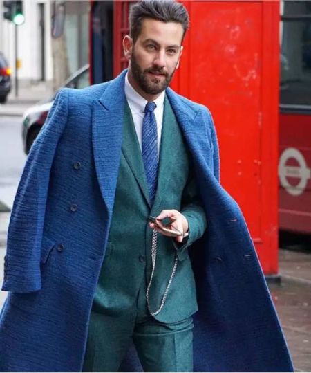 最会穿衣男士之一时装博主matthew zorpas虽然也是穿了简单的西服配大衣,但赢在了敢于撞色。