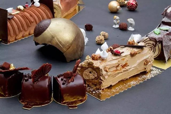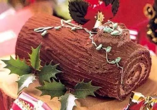圣诞树干蛋糕(Bûche de Noël)是平安夜圣诞大餐上最后一道甜点。