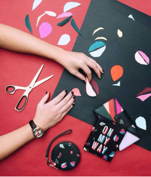 据印花设计师Emily回忆说:“当Fossil设计师们聚首一堂希望寻找新的季度灵感时,大家不经意地发现,鲜艳的几何色块在漆黑背景的衬托下,营造出一种有趣并十分契合这个冬季的节日气氛。”而这种充满色彩和线条碰撞的设计风格,正好与野兽派创始人马蒂斯的剪纸作品不谋而合。正如万花筒的英语“KALEIDO”的来源一样,该系列糅合了希腊语中的KALOS(美丽)和EIDOS(形状)等别致风格,也最主要的设计特点都概括在其中。
