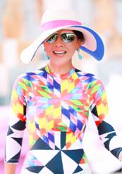 节目中的穿搭也是自成一家,水中游戏的游泳衣让嘉玲姐用一顶宽檐草帽搭的也是引人注目。