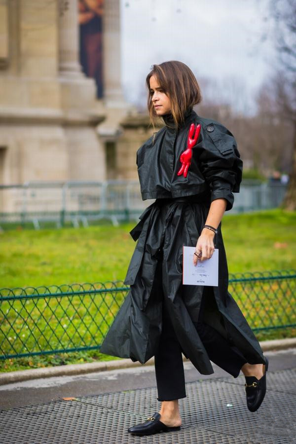 一脚蹬的单鞋是长款大衣的好cp,普通单鞋难免略显单薄,撞色毛绒款则很好做到平衡。
