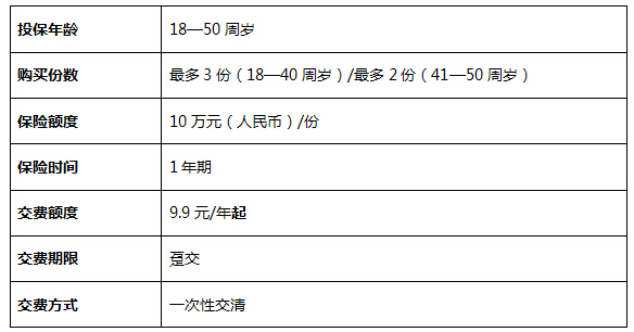 在投保年龄范围上,久久防癌险的投保范围也较广,覆盖18—50周岁人群,费用尤为低廉,最低仅需9.9元/年,而保额却达到10万元人民币/份。