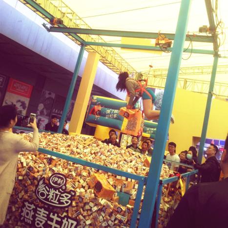 伊利谷粒多创意互动 彭于晏操控真人威亚抓牛奶