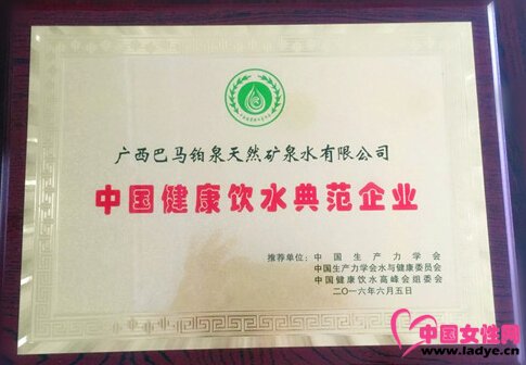 巴马铂泉荣获“中国健康饮水典范企业”称号