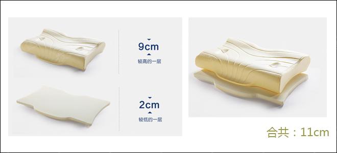 以女性型号记忆枕为例,上层枕使用慢回弹材质,缓冲肩颈压力,4D立体设计更贴合女性颈部,增强睡眠时的舒适性。下层为高回弹棉,填补矮枕的额外承托力需要,以此满足女性对枕头高矮的不同需求。