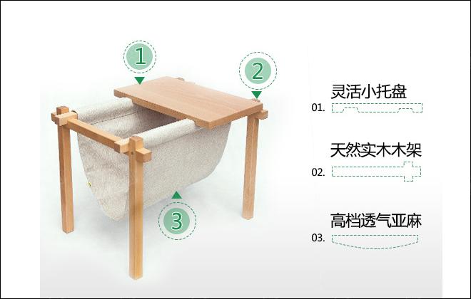 实木加棉麻材质的边几,透着浓浓自然气息,特别适合搭配原木风、MIJI风家居。桌面上可以摆放茶具,布袋里可以收纳书本或者零碎小物品。桌面还能取下,当做托盘使用。边桌虽小,功能却不小。