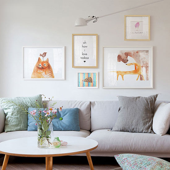 浅紫色的沙发散发出时尚优雅的魅力,在追求摩登现代的客厅空间中搭配显得相得益彰,再用艺术性极强的挂画装饰背景墙,家居个性尽显无遗。