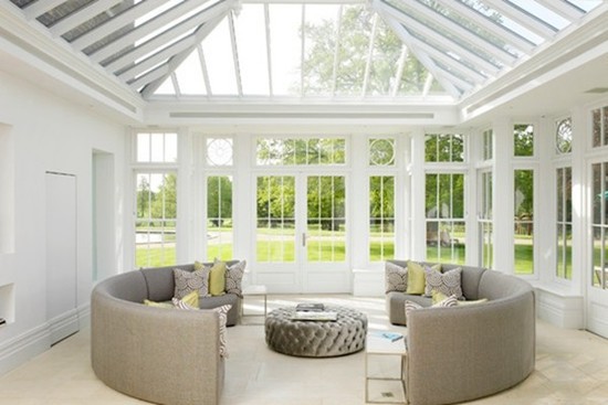 圆弧形的造型和落地窗户有了欧洲的古堡风情,坐在柔软的沙发上,得以享受不同方向的户外全景。