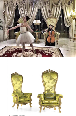 随着观众们步入展厅,芭蕾舞演员开始在施华洛世奇水晶灯的映衬下翩翩起舞,大提琴手端坐在高背椅上,悠扬的音符缓缓流淌开来。这组高背扶手椅出自意大利百年品牌BOISERIE ITALIA的巨匠之手,他们给家居穿上宫廷华服,赋予家居柔美的曲线,与舞者曼妙的身姿组成了一幅赏心悦目的画面。