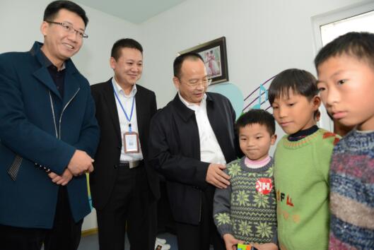 中国儿童少年基金会秘书长朱锡生与恒源祥集团总经理陈忠伟探望遵义市福利院儿童