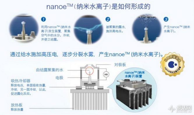 因此松下从导致头发分叉、毛躁的毛鳞片着手,EH-NA98C顶部nanoe纳米水离子喷射口与矿物质负离子喷射口能产生nanoe纳米水离子、矿物质负离子。其中nanoe纳米水离子是松下特有技术,它通过电极给空气中的水分子施加高压电,产生源源不断、呈弱酸性又富含羟自由基的naone纳米水离子。