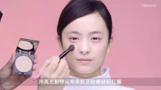 使用彩棠TIMAGE青春焕泽光感粉饼以打圈的方式涂到苹果肌位置,提亮面部的光泽感,打造立体妆面。