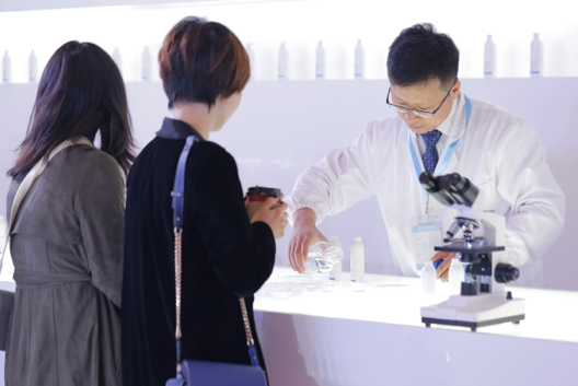 发布会的现场调性堪称高大上,会场的布景和灯光无不显示出这场发布会的高级感。现场,最引人注目的就是产品展示区和试验区,COSCURE珂思蔻发布的最新产品在此进行实验演示,专业的实验人员、精密的制备仪器、颇有格调的装饰,吸引了众多来宾的围观。