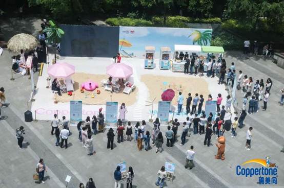 据悉,本次以“无忧无虑,晒出玩心”为主题的签约仪式可谓别具一格。在活动现场,Coppertone®确美同®为了让消费者感受到水宝宝的防晒实力,体现其专业的儿童防晒这一品牌形象,特意将活动现场变成了一片沙滩,还精心布置了抓娃娃机、套圈儿、棉花糖等儿童喜爱的娱乐设施,瞬间将签约活动变成拥有阳光、沙滩,充满童趣的儿童游乐场。
