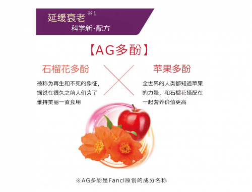 AG多酚(石榴花多酚&苹果多酚)具有抗糖化和抗氧化双重功效,从根本上预防肌肤老化。