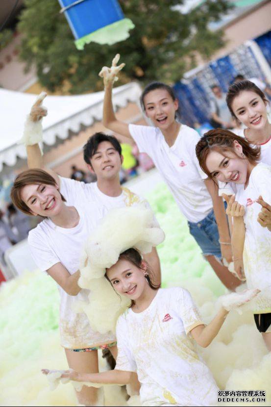 活动当天,正是北京高温天气,有不少人来到“北京水魔方”避暑。主办方贴心地为前来参加活动的人准备了“夏日彩色泡沫Party”,四种不同颜色的泡沫同时倾洒而出,形成一场巨大的“泡沫瀑布”!俊男靓女们在人群兴奋的尖叫中玩耍、嬉戏,一时间现场气氛达到了最顶峰,嗨翻全场。