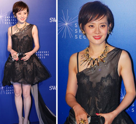 孙俪身穿一袭黑色露肩吊带半透视蓬蓬短裙现身,奢华的配套首饰展现浓郁的巴洛克风情,耳环、项链、戒指一个都不能少,再配上烈焰红唇+艳粉色的指甲,妖冶魅惑,谁说“清水芙蓉”就不能当辣妈啦?