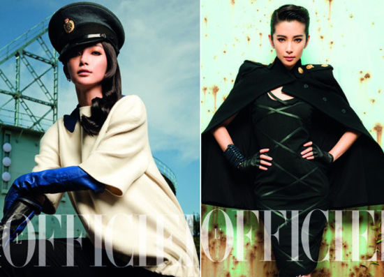 李冰冰的这组大片就以军装制服为主题,硕大的军帽和硬挺的肩章斗篷,让本来柔美的她也帅气起来。