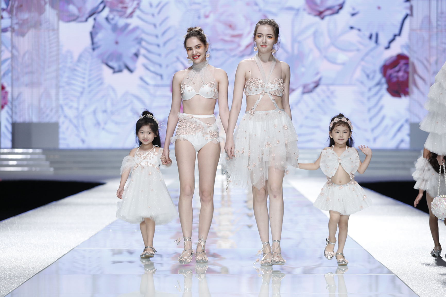 踩着轻快的音乐,T台上时尚辣妈牵着萌娃出常如同国际时尚舞台上最抢风头的一群明星潮妈一般,安莉芳打造下的年轻妈妈们正迎来人生中又一个精彩瞩目时刻。她们或是运用相同色系打造亲子间的默契感,或是采用相同款式让人眼前一亮。夸张的卡通插画图、大大的荷叶花边元素青春洋溢,更有充满天使气息的立体花朵蓬蓬纱裙营造“母女花”。