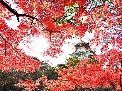 大阪城公园就是其中一个观赏红叶的好地方,位于日本第二大城市大阪的市中心。走进这个曾经一度是日本政治中心的大阪城,至今都能够感受到丰臣家大权在握时的辉煌与富贵,加上秋天被阳光染红的烂漫枫叶的点缀,俨然就像是一座被重建的古城堡。