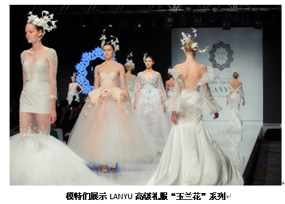 26日盛典现场,LANYU高级礼服展示的是精湛的工艺和始终如一的设计理念,创始人兰玉表达的则是品牌内涵和外延的求变,市场布局和营销形态的求变。兰玉说,继兰氏苏绣和LANYU高级定制之后,推出高级礼服的愿望是:“让每个女孩成为自己的公主,把女性的美丽从婚礼殿堂延伸到生命中的每一个闪亮时刻。”兰玉小姐在现场宣布了启动LANYU品牌新微信平台和线上智慧商城的消息正是为了“让女孩们的公主梦触手可及”。