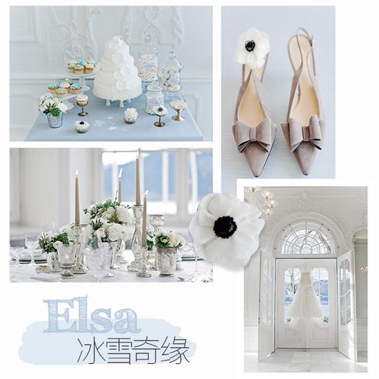 冰雪奇缘冰雪奇缘:身怀“杰克冻人”同样技能的爱莎公主,但却怕自己的超能力伤害到其他人,而把自己封闭起来,也许“孤独”是爱莎体会最多的情感。婚礼主题的颜色会以白色、冰蓝色为主,这些色彩饱和度底,同时都是冷色调,更能表现出一个人时的寂寞与宁静。银莲花是一种凄凉而寂寞的花,搭配在婚礼上也愈添一份沉寂。