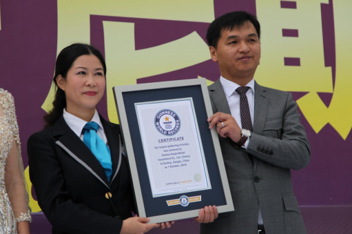 婚纱产业,是虎丘婚纱城这座婚尚文化旅游产业园的重头戏,适逢此次婚尚盛宴,发起人决定挑战最多新娘一起穿婚纱自拍的吉尼斯世界纪录。这个奇思妙想,赢得了众多准新娘的支持。短短1个月,908位准新娘报名参与了活动。他们从全国各地赶来,7号早上8点穿着婚纱准时出现在虎丘婚纱城,拿起手机留下了最壮观的一刻,放飞象征爱情与美好未来的气球。吉尼斯世界记录官方认证官罗琼女士当场宣布挑战成功,并向苏州虎丘婚纱投资有限公司总经理顾伟春颁发了证书。