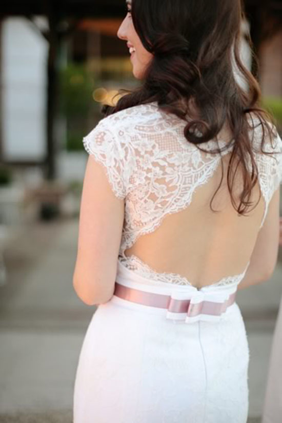 来源:女性伊网 编辑:颖颖 点击: 次日期:2015-12-15全蕾丝的后背 精巧可爱的小飞袖,全蕾丝的后背,三角形的露背开口设计,如果觉得这些还不够的话,就再加上一条腰带,背后留一个蝴蝶结,整体就丰