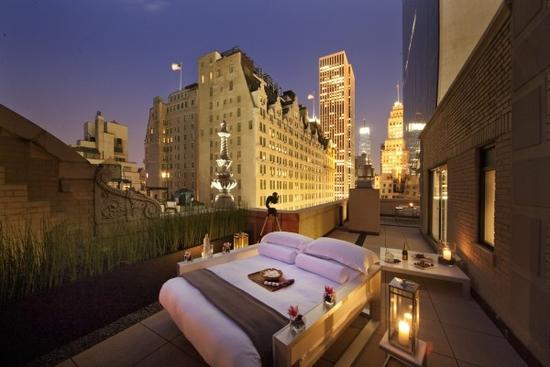 看过美剧《猫鼠游戏》的不少人都会羡慕剧中男主那间正对中央公园的豪华卧房。不必羡慕,AKA的顶楼套房露台照样可以让你将整个“大苹果”的旖旎风光尽收眼底。