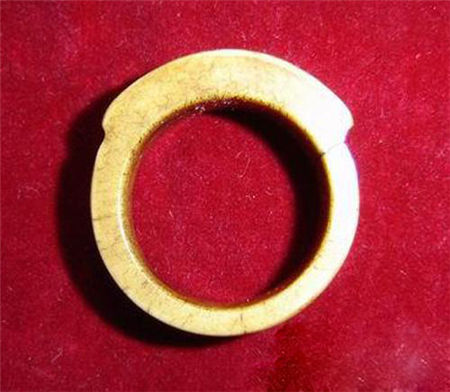 明代骨戒指这是一款出土的明代骨戒指,中式戒指并不是从明代开始的。中国古代在原始社会就有戒指了。大汶口-龙山文化时期的墓葬中已有骨戒指出土,有的戒指上还嵌有绿松石。这款婚戒样式简单,却极具厚重感与设计感,透过数千年的时光,向我们诉说了古代恋人间死生相依的爱恋。