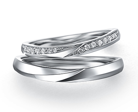 流线型设计的女戒与璀璨的钻戒,相互呼应,熠熠生辉。最特别的是,对戒中的男戒和女戒亦可重叠,当两枚戒指重叠时,仿佛新月从连绵云彩缝隙中穿透,洒落而下的美丽光芒。
